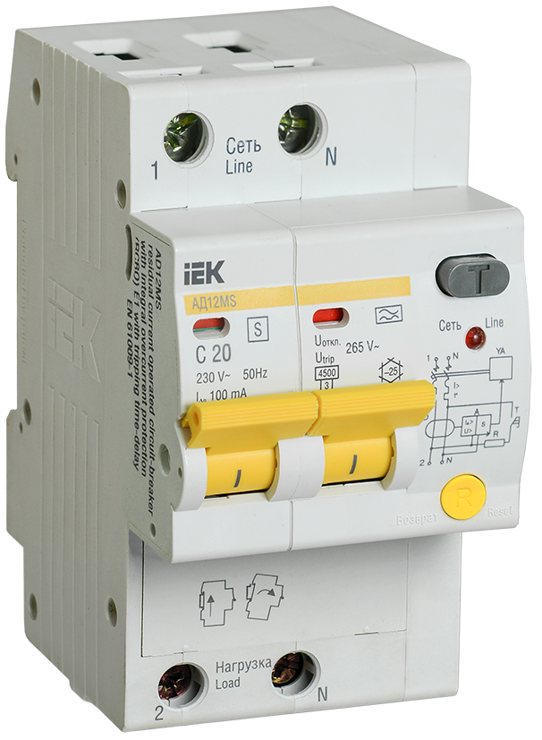 Наименование: Дифференциальный автоматический выключатель АД12MS 2Р 20А 100мА IEK