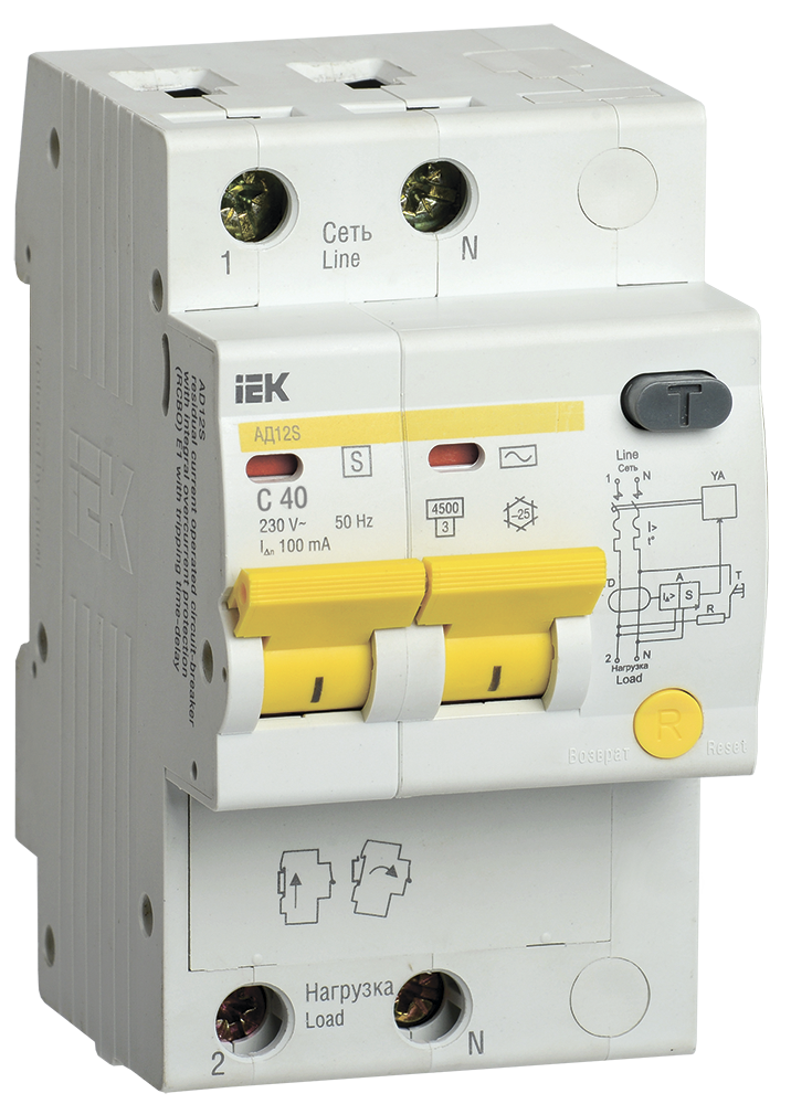 Наименование: Дифференциальный автоматический выключатель АД12S 2Р 40А 100мА IEK