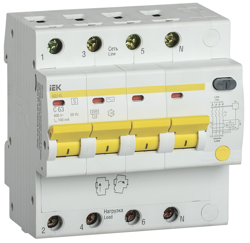 Наименование: Дифференциальный автоматический выключатель АД14S 4Р 63А 100мА IEK