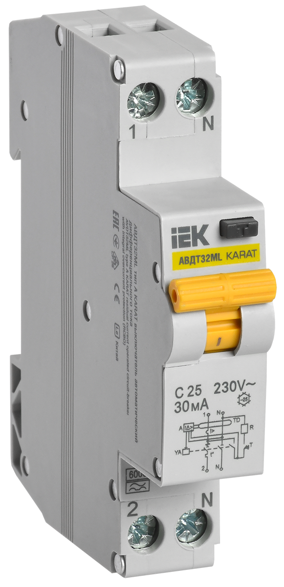 Наименование: Выключатель автоматический дифференциального тока АВДТ32ML тип A С25 30мА KARAT IEK