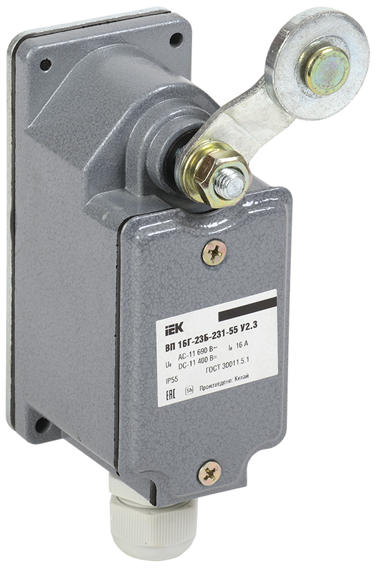 Наименование: Выключатель концевой ВП 16Г-23Б-231-55 У2.3 рычаг с роликом/ход вправо/cамовозврат 1з+1р IP55 IEK