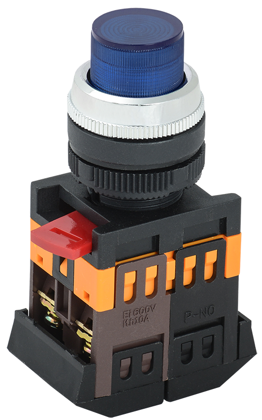 Наименование: Кнопка ABLFP-22 синий d=22мм неон/240В 1з+1р IEK