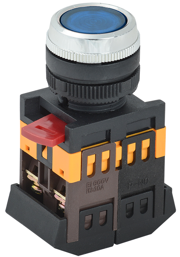 Наименование: Кнопка ABLFS-22 синий d=22мм неон/240В 1з+1р IEK