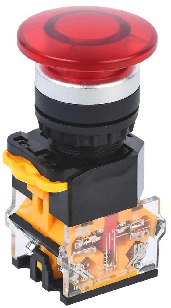 Наименование: Кнопка D8-11M "Грибок" d=22мм 1з+1р красная IEK