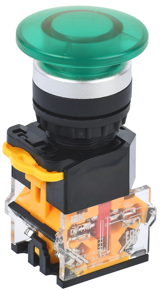Наименование: Кнопка D8-11M "Грибок" d=22мм 1з+1р зеленая IEK