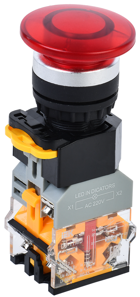 Наименование: Кнопка D8-11MD "Грибок" d=22мм 1з+1р с подсветкой красная IEK