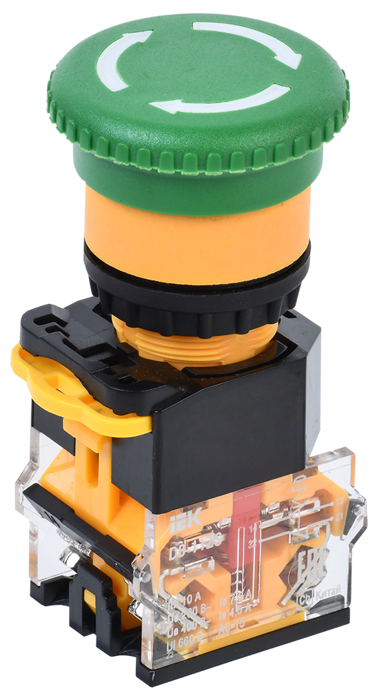 Наименование: Кнопка D8-11ZS "Грибок" d=22мм 1з+1р поворотная с фиксацией зеленая IEK