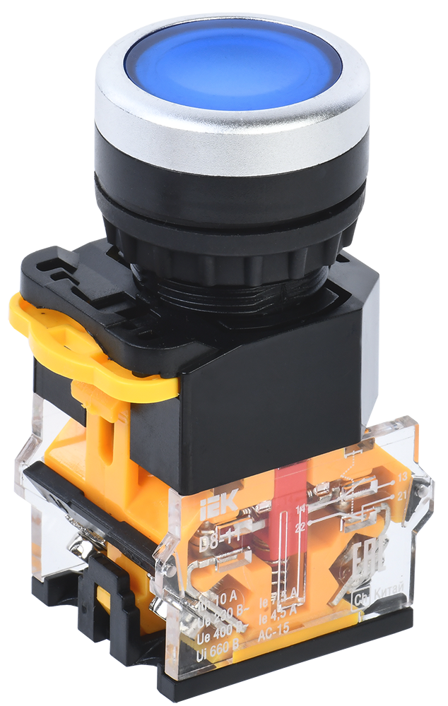 Наименование: Кнопка управления D8-11 d=22мм 1з+1р синяя IEK