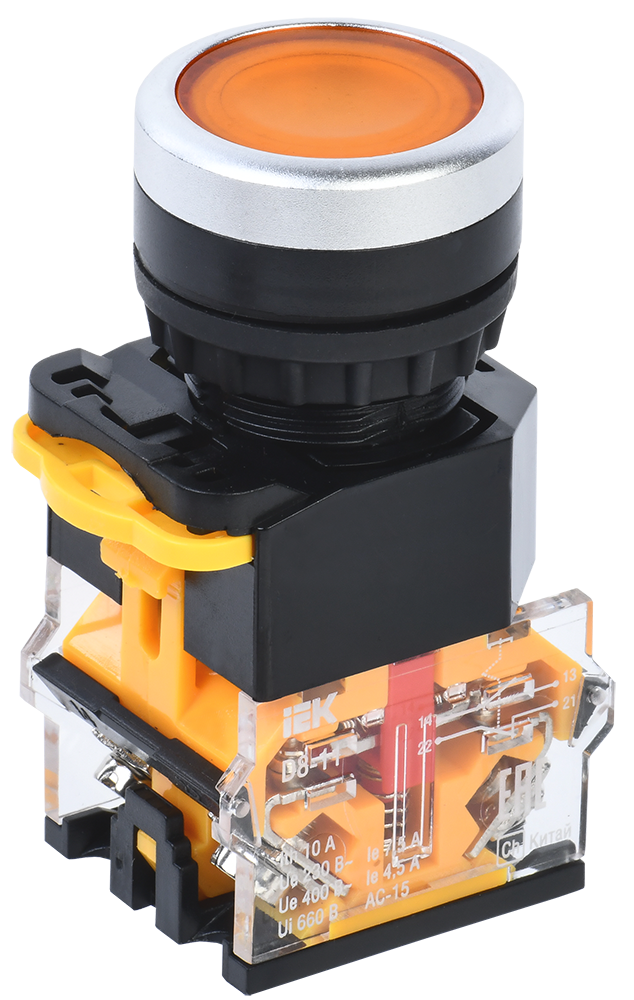 Наименование: Кнопка управления D8-11 d=22мм 1з+1р желтая IEK