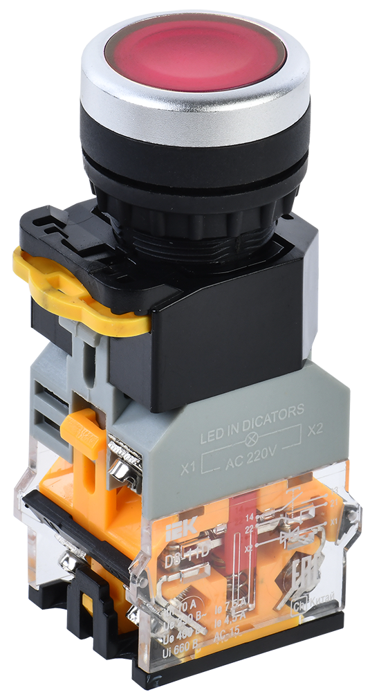 Наименование: Кнопка управления D8-11D d=22мм 1з+1р с подсветкой красная IEK