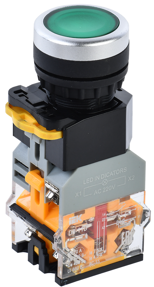 Наименование: Кнопка управления D8-11D d=22мм 1з+1р с подсветкой зеленая IEK