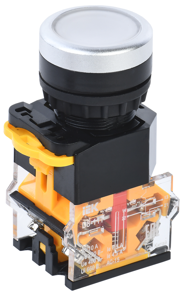 Наименование: Кнопка управления D8-11T d=22мм 1з+1р с фиксацией белая IEK