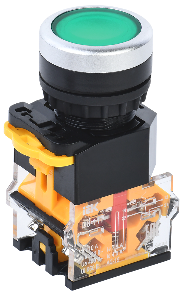 Наименование: Кнопка управления D8-11T d=22мм 1з+1р с фиксацией зеленая IEK