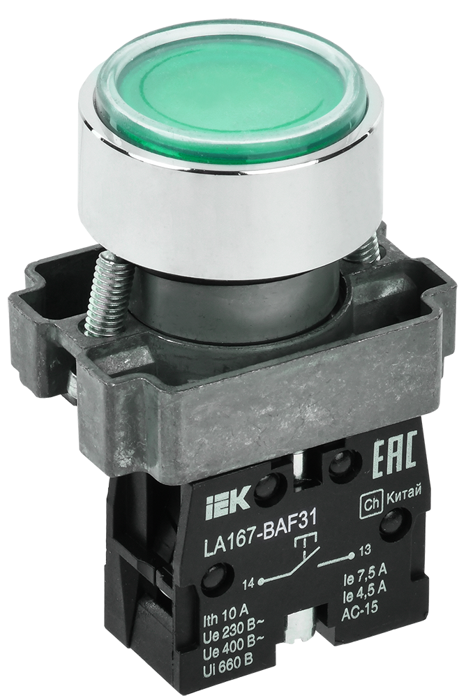 Наименование: Кнопка управления LA167-BAF31 d=22мм 1з зеленая IEK