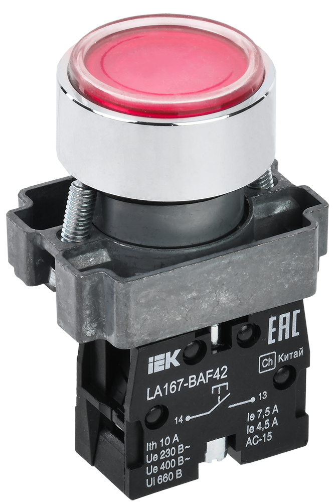 Наименование: Кнопка управления LA167-BAF42 d=22мм 1р красная IEK