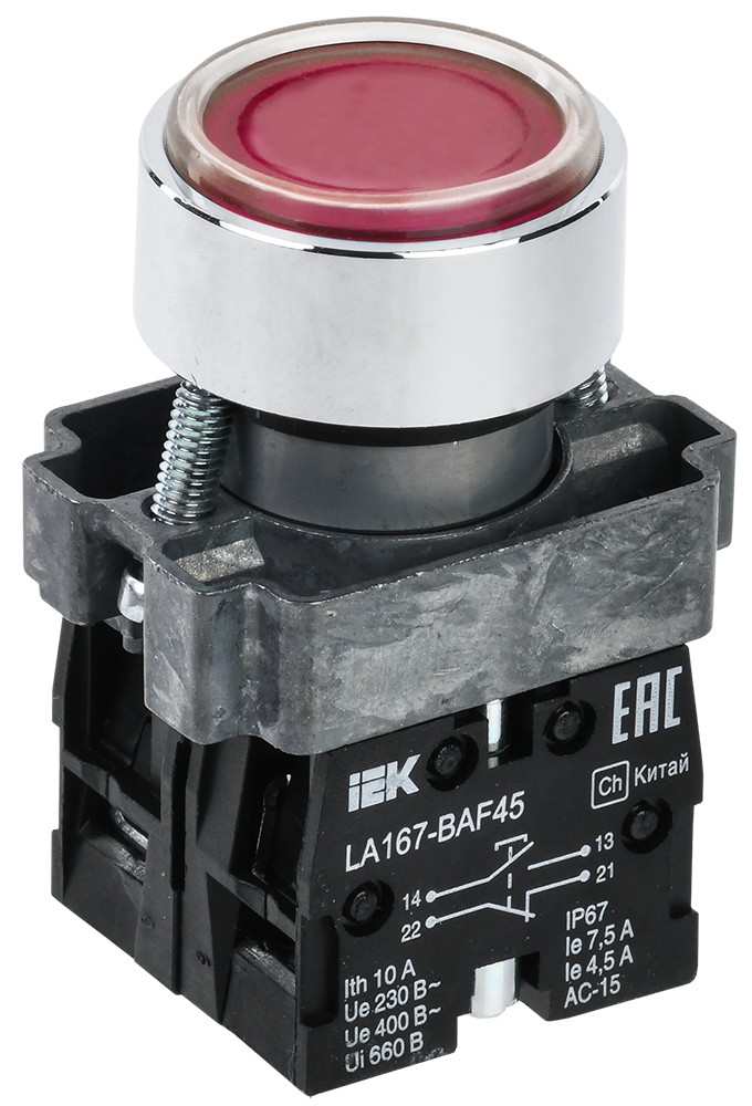 Наименование: Кнопка управления LA167-BAF45 d=22мм 1з+1р красная IEK