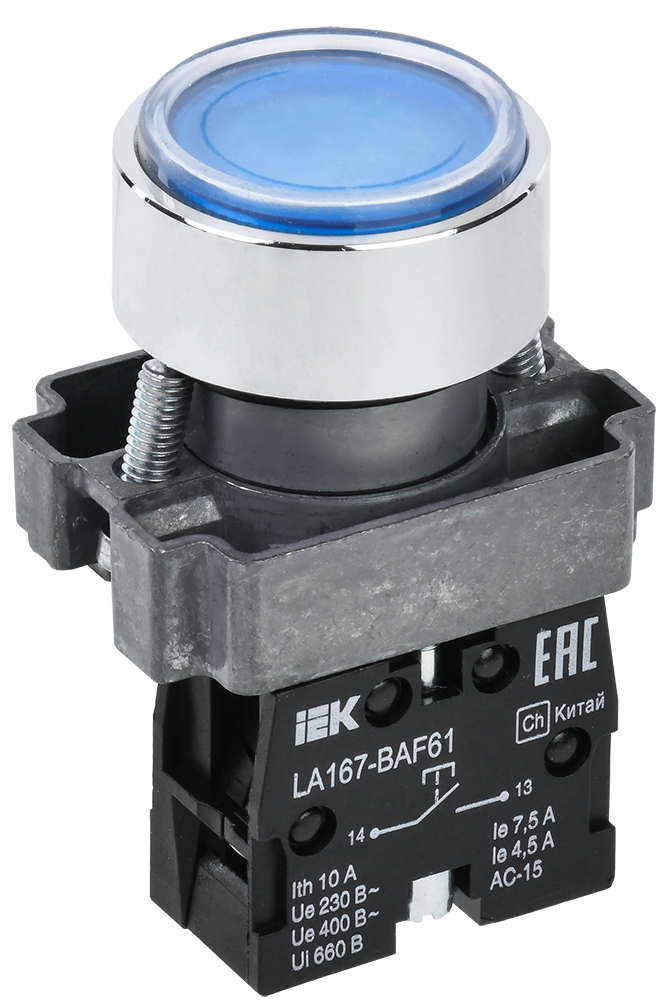Наименование: Кнопка управления LA167-BAF61 d=22мм 1з синяя IEK