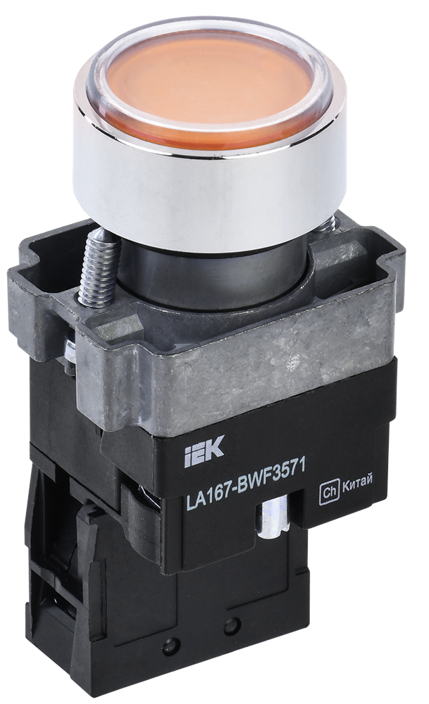 Наименование: Кнопка управления LA167-BWF3571 d=22мм RC 1з с подсветкой желтая IEK
