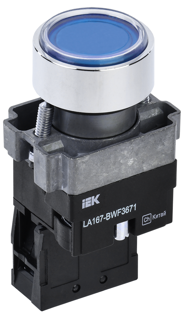 Наименование: Кнопка управления LA167-BWF3671 d=22мм RC 1з с подсветкой синяя IEK