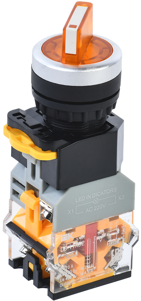 Наименование: Переключатель D8-11XD2 на 2 положения 1з+1р с подсветкой желтый IEK