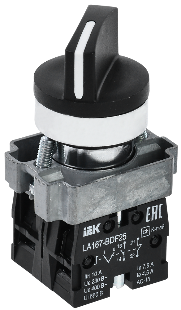 Наименование: Переключатель LA167-BDF25 на 2 положения 1з+1р черный IEK