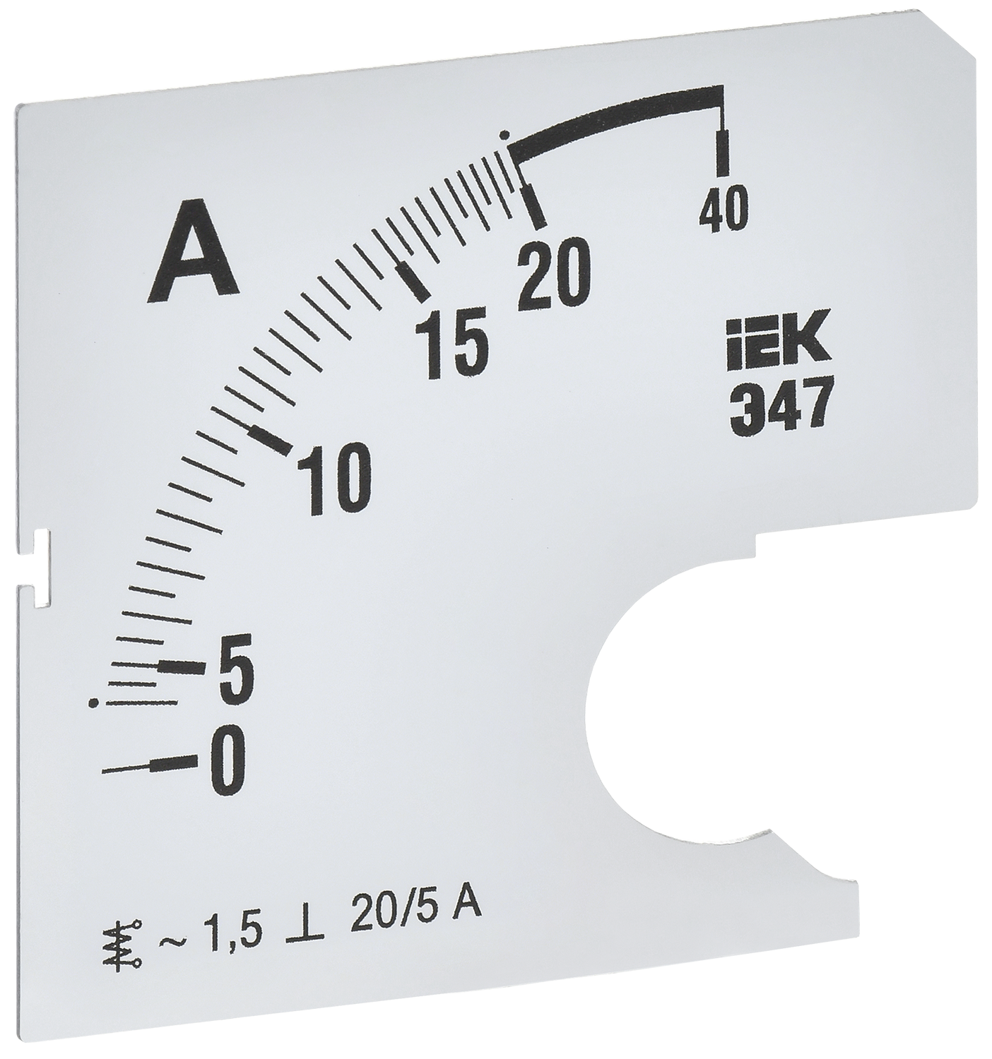 Наименование: Шкала сменная для амперметра Э47 20/5А класс точности 1,5 72х72мм IEK
