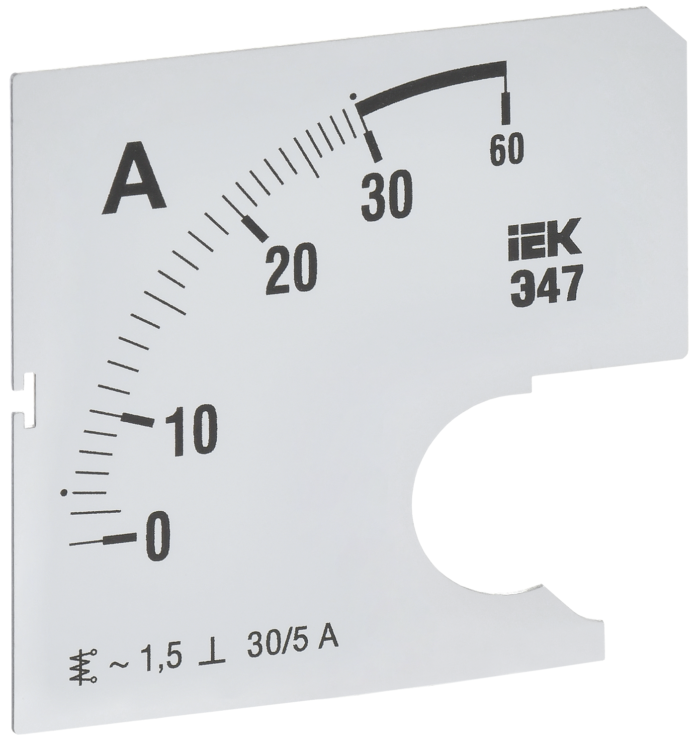 Наименование: Шкала сменная для амперметра Э47 30/5А класс точности 1,5 72х72мм IEK