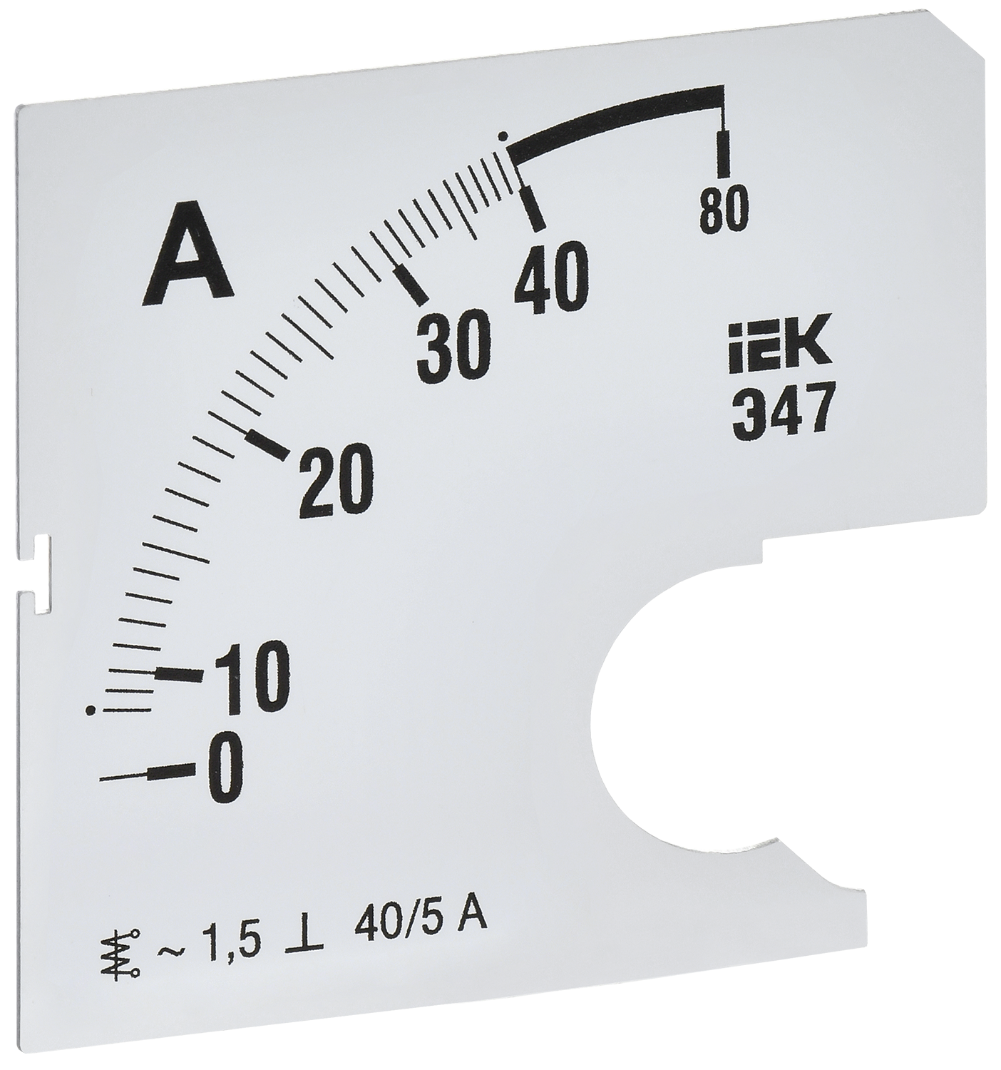 Наименование: Шкала сменная для амперметра Э47 40/5А класс точности 1,5 72х72мм IEK