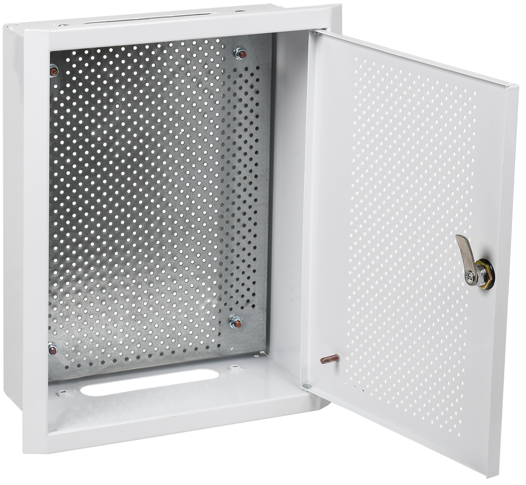 Преимущества: Перфорированная радиопрозрачная дверь. Стильный дизайн – скошенные углы корпуса. Высококачественное наружное покрытие – белый глянец. Высокая технологичность и простота сборки – съемная перфорированная монтажная панель. Высокий уровень электробезопасности.