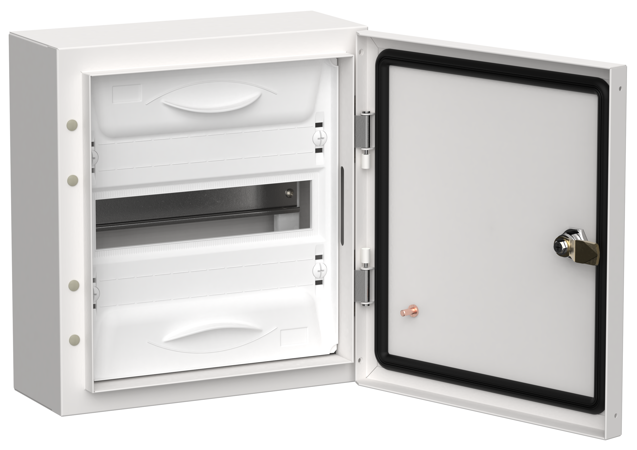 Преимущества: Широкий размерный ряд. Модульная ёмкость от 12 до 216 модулей. Высокая степень защиты – IP54. Удобный монтаж: отсутствие перегородки между секциями корпуса; съемная монтажная рама. Увеличенное пространство за DIN-рейками для прокладки кабеля. Возможность пломбировки фальш-панели. Перенавешиваемая дверь. Многофункциональный кабельный ввод. Возможность установки шин сверху и снизу. Полная комплектация. Стильный дизайн.