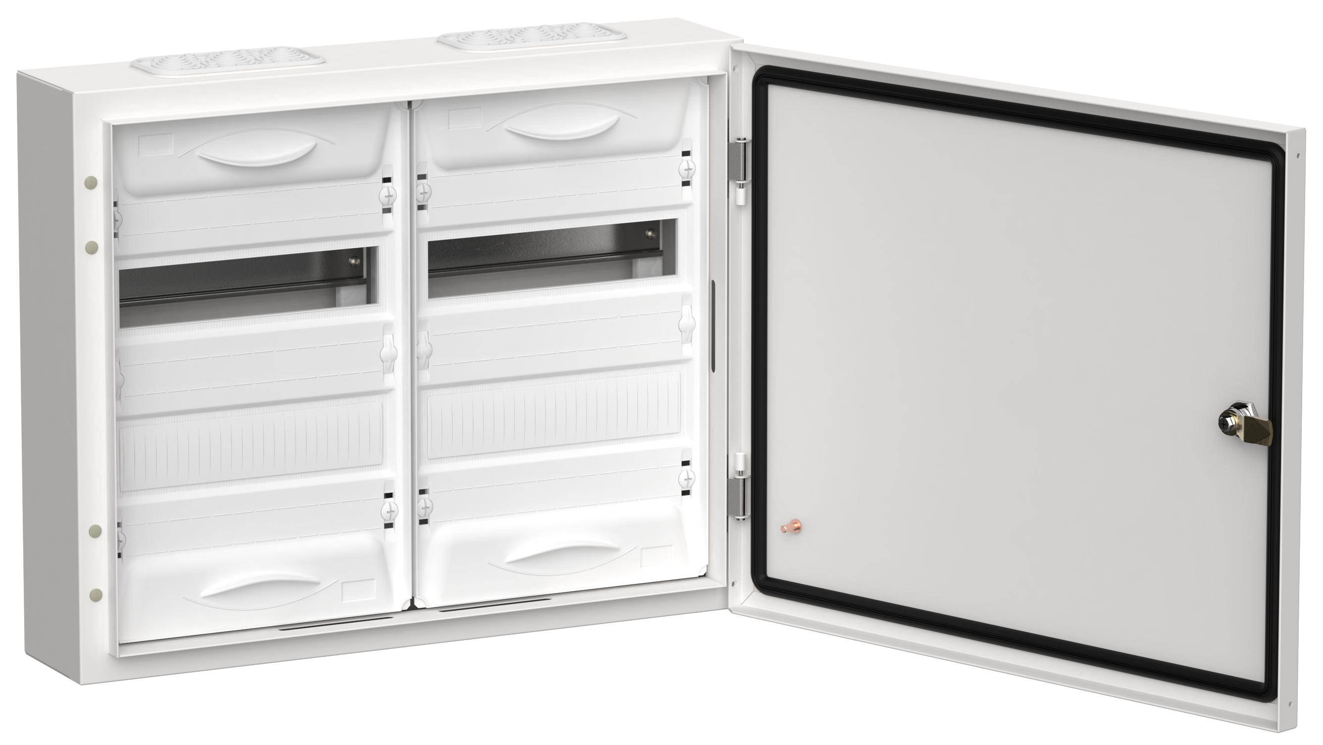 Преимущества: Широкий размерный ряд. Модульная ёмкость от 12 до 216 модулей. Высокая степень защиты – IP54. Удобный монтаж: отсутствие перегородки между секциями корпуса; съемная монтажная рама. Увеличенное пространство за DIN-рейками для прокладки кабеля. Возможность пломбировки фальш-панели. Перенавешиваемая дверь. Многофункциональный кабельный ввод. Возможность установки шин сверху и снизу. Полная комплектация. Стильный дизайн.
