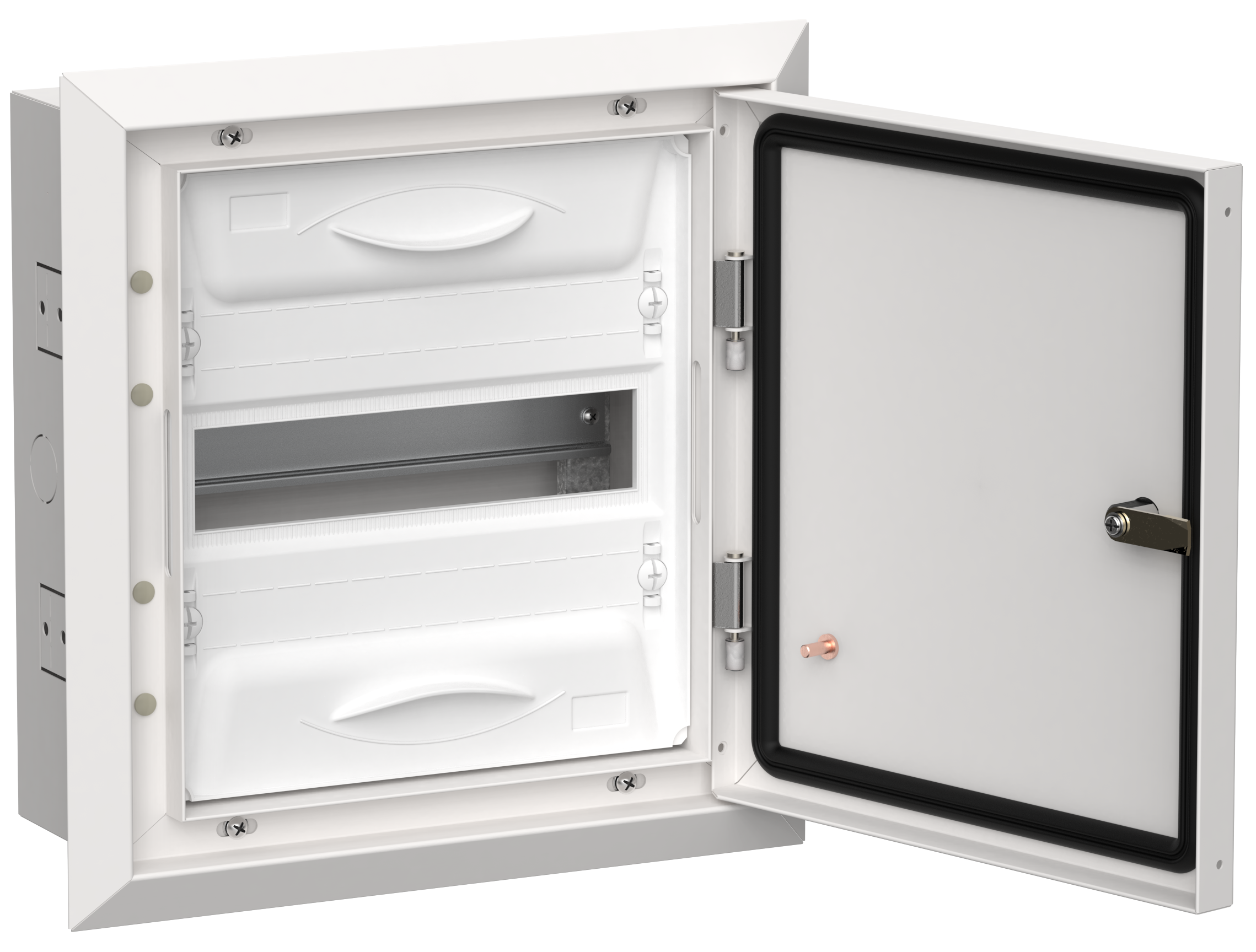 Преимущества: Широкий размерный ряд. Модульная ёмкость от 12 до 252 модулей. Удобный монтаж: отсутствие перегородки между секциями корпуса; съемная монтажная рама. Увеличенное пространство за DIN-рейками для прокладки кабеля. Возможность пломбировки фальш-панели. Перенавешиваемая дверь. Возможность установки шин сверху и снизу. Полная комплектация. Стильный дизайн.