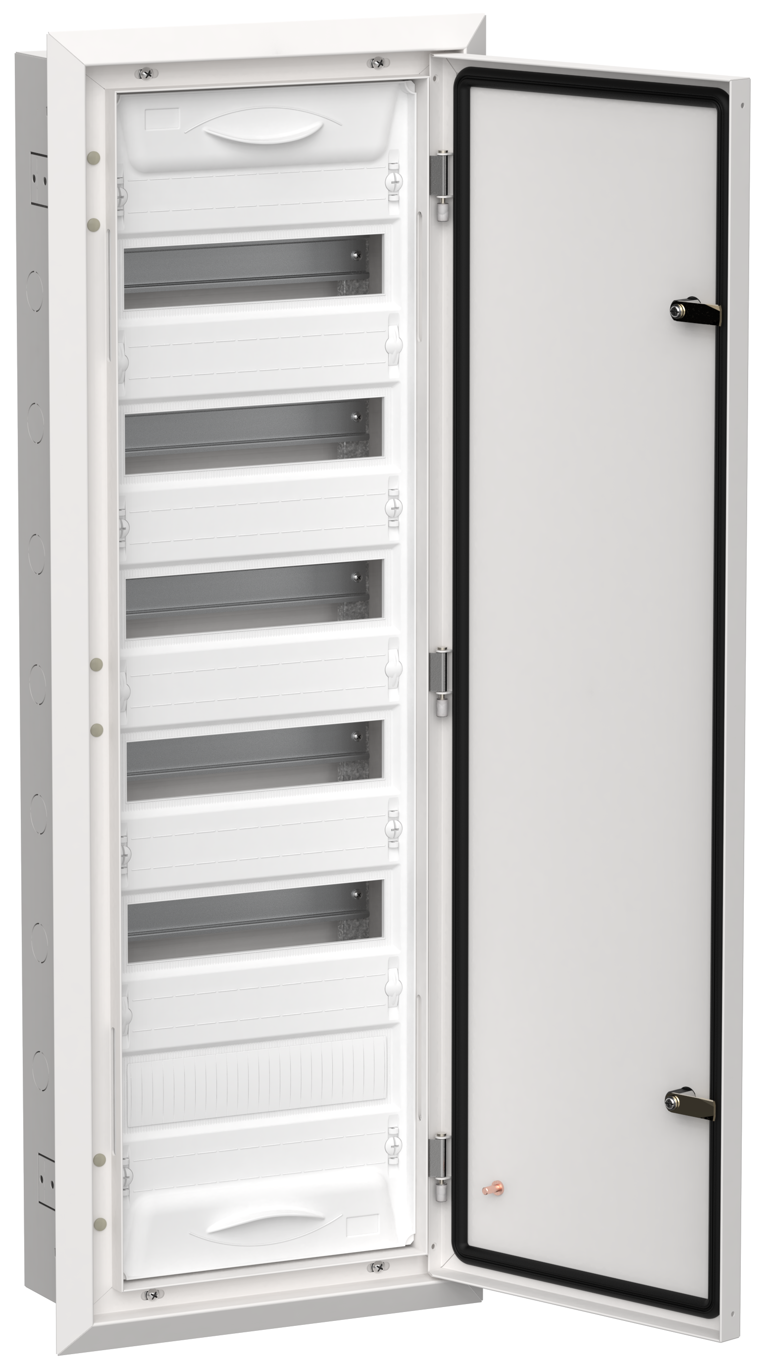 Преимущества: Широкий размерный ряд. Модульная ёмкость от 12 до 252 модулей. Удобный монтаж: отсутствие перегородки между секциями корпуса; съемная монтажная рама. Увеличенное пространство за DIN-рейками для прокладки кабеля. Возможность пломбировки фальш-панели. Перенавешиваемая дверь. Возможность установки шин сверху и снизу. Полная комплектация. Стильный дизайн.