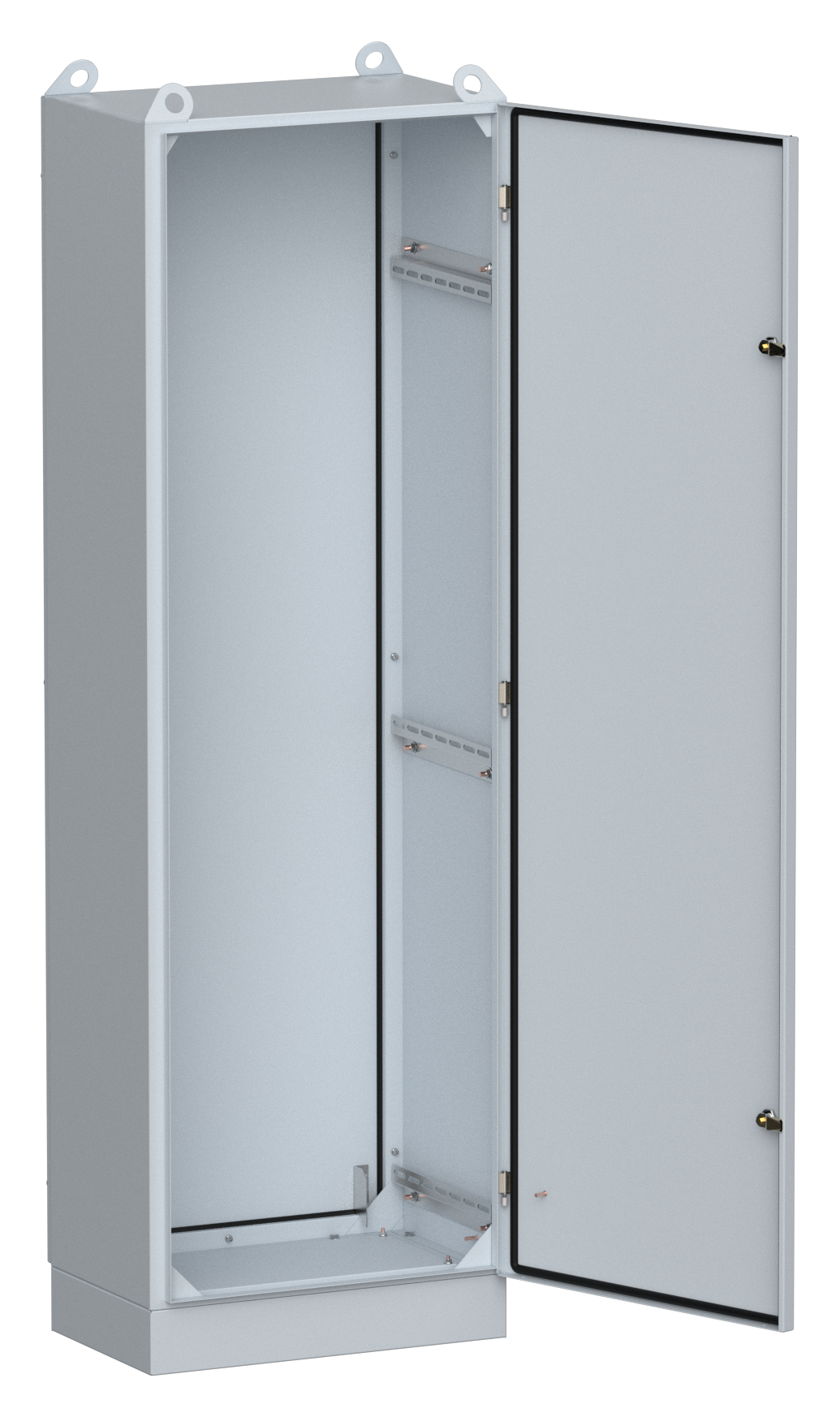 Преимущества: Полиуретановый уплотнитель по периметру двери для защиты от попадания влаги. Широкий выбор аксессуаров для различных вариаций сборок (монтажные панели разной высоты, уголки, планки). Провод заземления и знаки электробезопасности входят в базовую комплектацию корпуса. Съемная задняя стенка обеспечивает простоту сборки, доступ к оборудованию и возможность двустороннего обслуживания. Конструкция включает транспортировочные проушины и цоколь 100 мм.