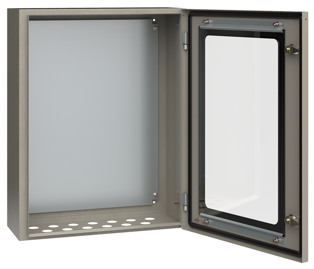 Преимущества: Визуальный контроль устанавленного оборудования. Закалённое стекло обеспечивает высокую степень ударопрочности IK08. Съемный кабельный ввод облегчает монтаж и подключение оборудования. Комплект для навески и провод заземления входят в базовую комплектацию корпуса.