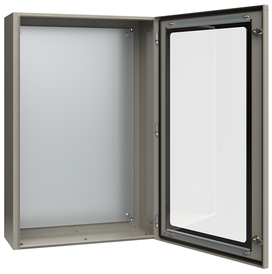 Преимущества: Визуальный контроль устанавленного оборудования. Закалённое стекло обеспечивает высокую степень ударопрочности IK08. Съемный кабельный ввод облегчает монтаж и подключение оборудования. Комплект для навески и провод заземления входят в базовую комплектацию корпуса.