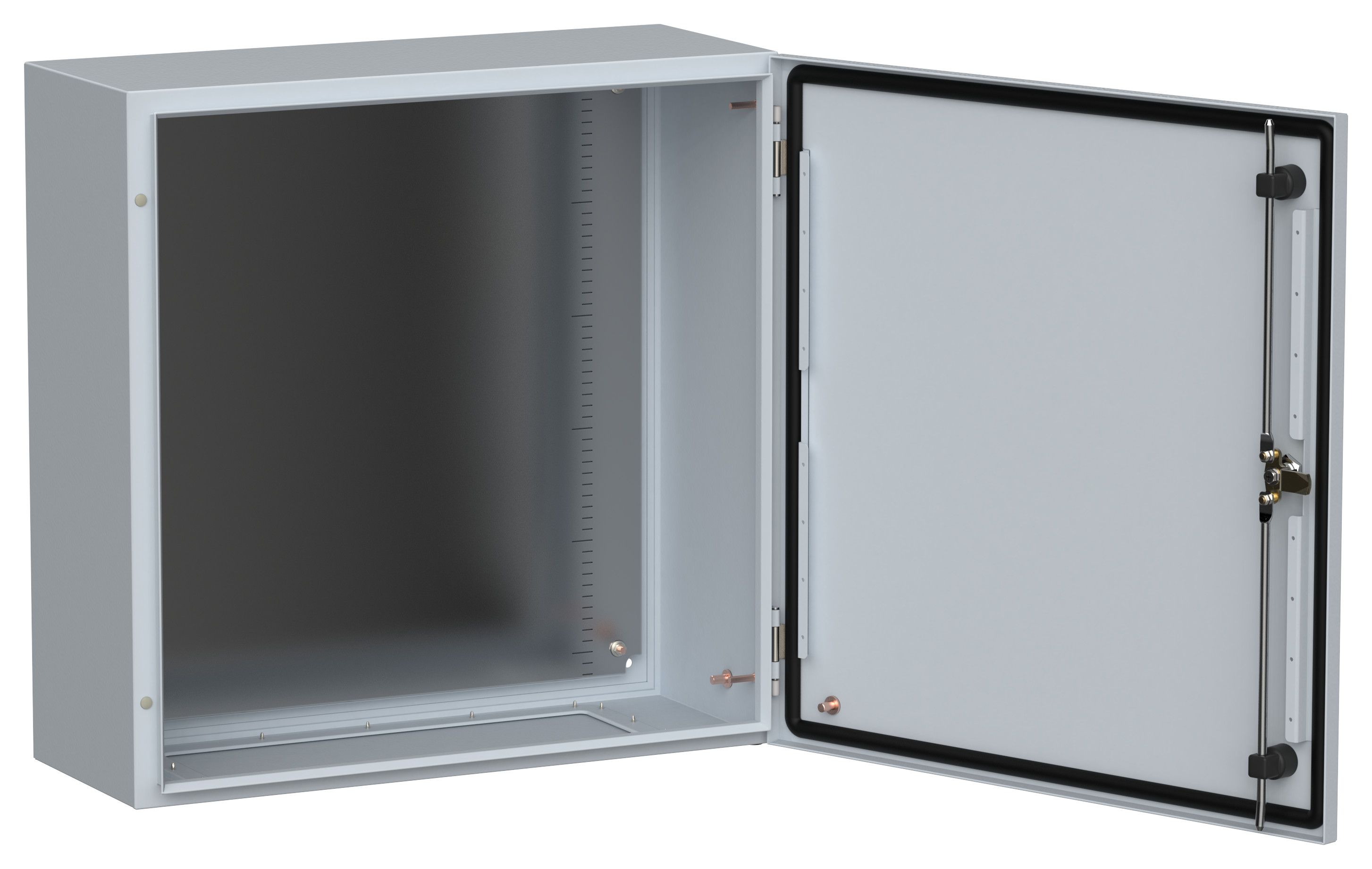 Преимущества: Высокая степень защиты IP66, УХЛ1 - возможность уличного использования корпусов под открытым небом. Грунтование перед окрашиванием – максимальная защита от коррозии. Трехточечное запирание двери одним поворотом ключа (для корпусов высотой от 500 мм). Двойная заковка кромок по периметру двери и оболочки обеспечивает дополнительную жесткость корпуса. Комплект для навески и провод заземления входят в базовую комплектацию корпуса.