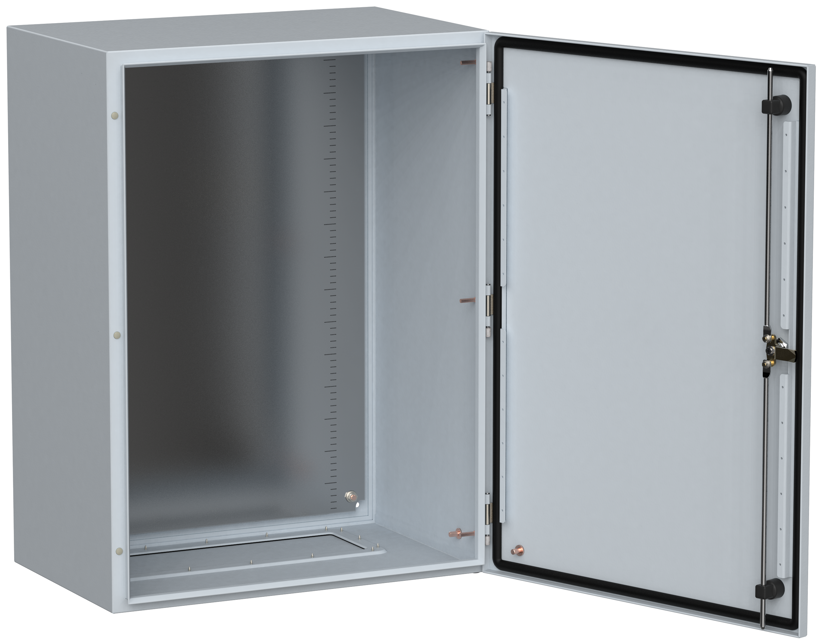 Преимущества: Высокая степень защиты IP66, УХЛ1 - возможность уличного использования корпусов под открытым небом. Грунтование перед окрашиванием – максимальная защита от коррозии. Трехточечное запирание двери одним поворотом ключа (для корпусов высотой от 500 мм). Двойная заковка кромок по периметру двери и оболочки обеспечивает дополнительную жесткость корпуса. Комплект для навески и провод заземления входят в базовую комплектацию корпуса.
