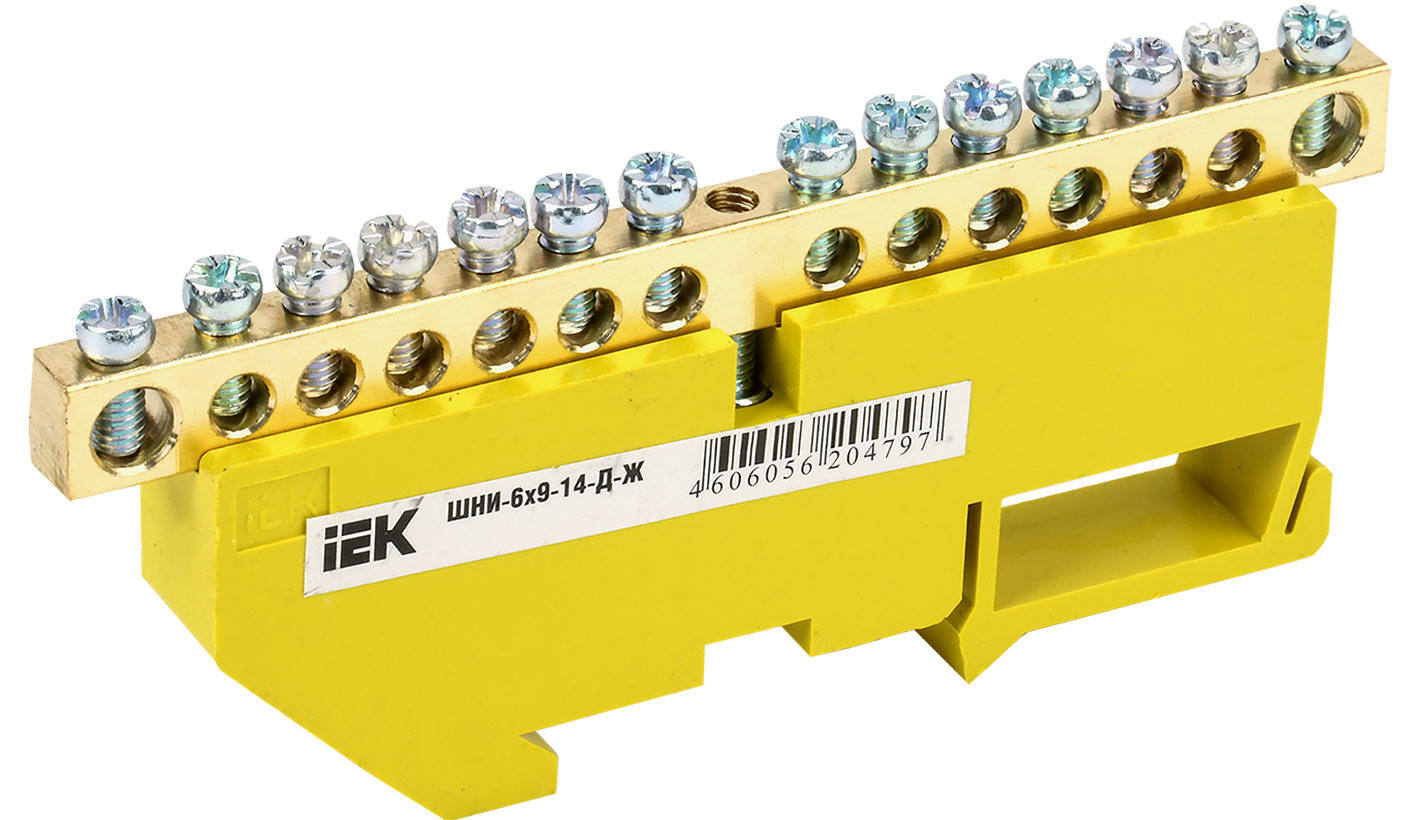 Наименование: Шина PE "земля" на DIN-изол ШНИ-6х9-14-Д-Ж IEK