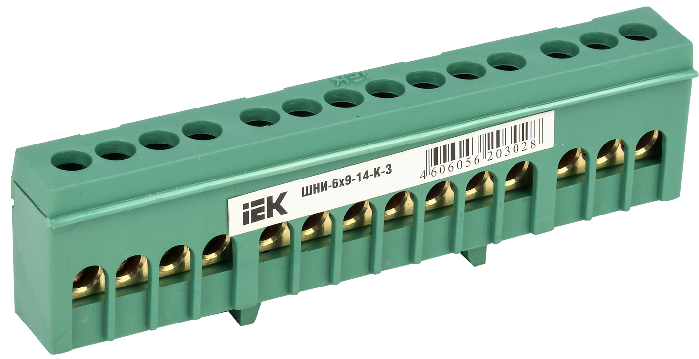 Наименование: Шина PE "земля" в корпусном изоляторе на DIN-рейку ШНИ-6х9-14-К-З IEK