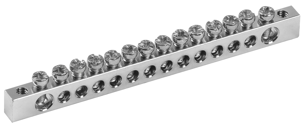 Наименование: Шина PEN "земля-ноль" 6х9мм 14/2 с никелевым покрытием (14групп/крепеж по краям) IEK