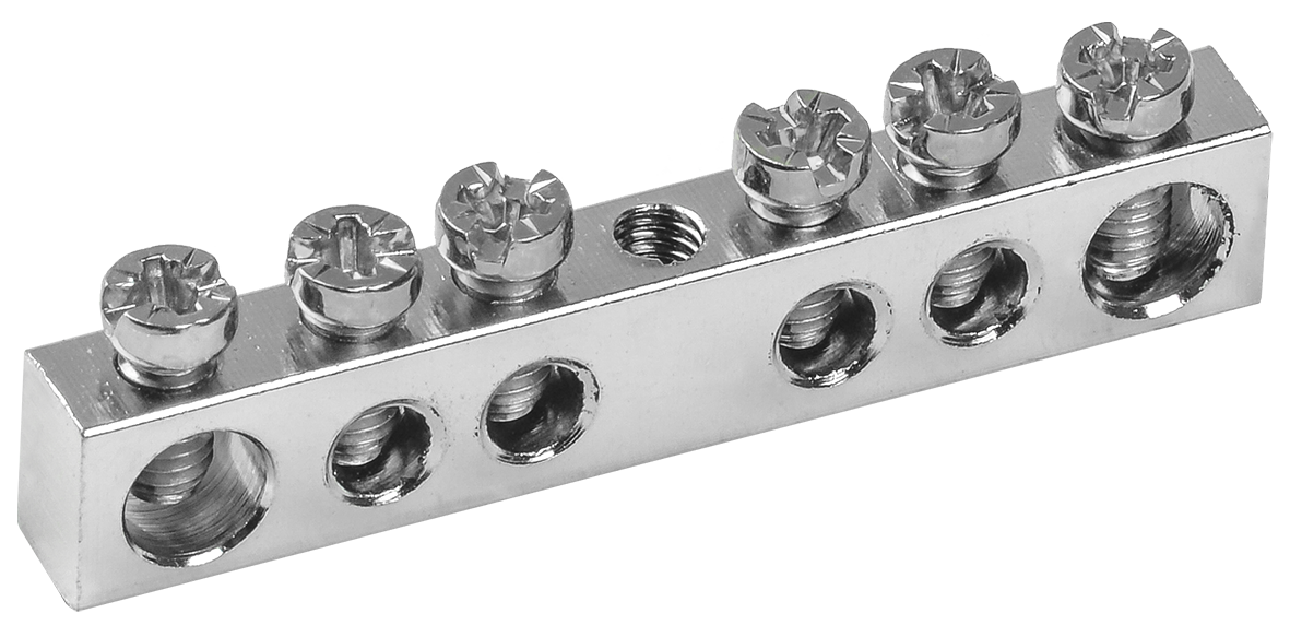 Наименование: Шина PEN "земля-ноль" 6х9мм 6/1 с никелевым покрытием (6групп/крепеж по центру) IEK