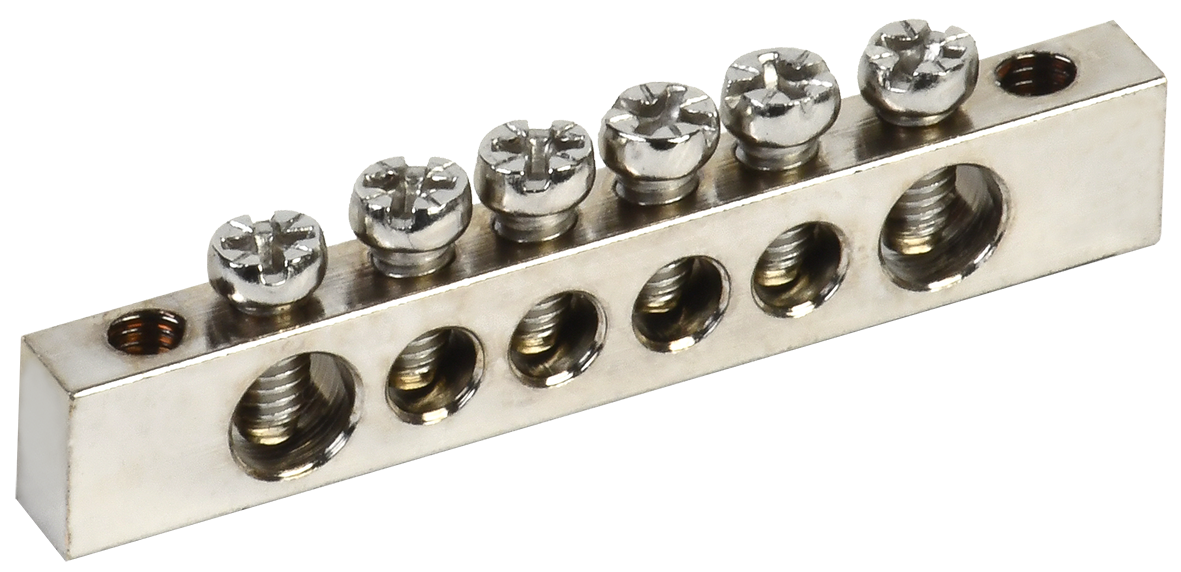 Наименование: Шина PEN "земля-ноль" 6х9мм 6/2 с никелевым покрытием (6групп/крепеж по краям) IEK