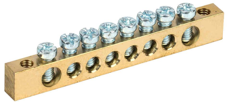 Описание: Применяются в щитовом оборудовании для подсоединения нулевых рабочих (N) и нулевых защитных проводов (РЕ). Крепление шины предусмотрено по центру (типы 8/1; 14/1) и по краям (типы 8/2 и 14/2) через изолятор нулевой шины на 35 мм монтажную DIN-рейку и через угловые изоляторы нулевой шины, а также непосредственно на панель щита. При подключении к шинам медных многожильных проводов рекомендуется оконцевание их наконечниками-гильзами. Выполнены из латуни.