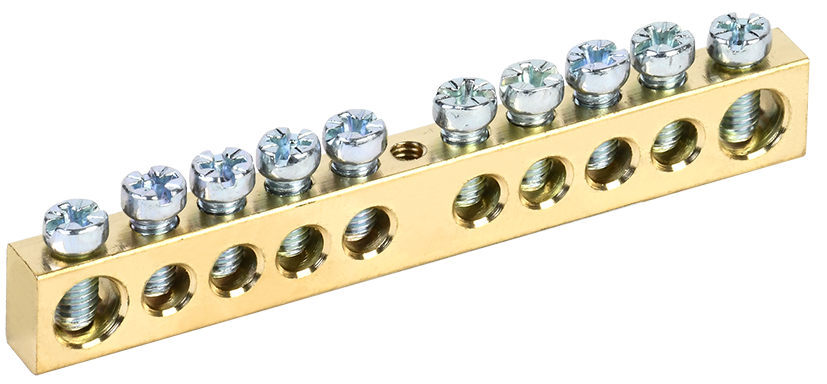 Наименование: Шина PEN "земля-ноль" 8х12мм 10/1 (10групп/крепеж по центру) IEK