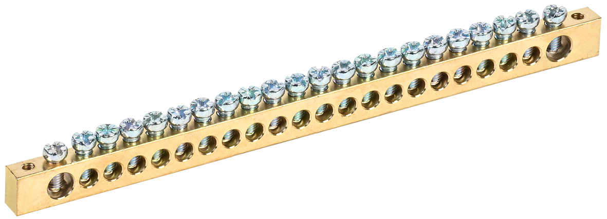 Описание: Применяются в щитовом оборудовании для подсоединения нулевых рабочих (N) и нулевых защитных проводов (РЕ). Крепление шины предусмотрено по центру (типы 8/1; 14/1) и по краям (типы 8/2 и 14/2) через изолятор нулевой шины на 35 мм монтажную DIN-рейку и через угловые изоляторы нулевой шины, а также непосредственно на панель щита. При подключении к шинам медных многожильных проводов рекомендуется оконцевание их наконечниками-гильзами. Выполнены из латуни.