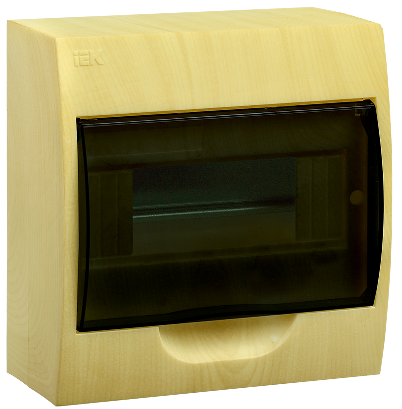 Преимущества: Ударопрочный, пожаробезопасный АБС-пластик. Вертикальное расположение корпуса и крышки. Простой и быстрый монтаж - отверстия для крепления корпуса. Удобный монтаж - предварительно выштампованные вводы для введения кабелей со всех сторон. Наличие специальной планки для крепления нулевой шины. Маркировочная лента входит в комплект изделия. Универсальные винты. Надежная DIN-рейка. Данная серия отлично гармонирует с цветом кабельных каналов, ЭУИ и монтажных коробок IEK в цвет дерева, что позволяет придать помещению красивый внешний вид в едином стиле.