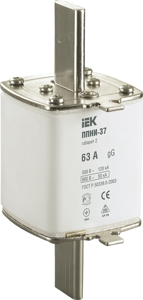 Наименование: Плавкая вставка предохранителя ППНИ-37 габарит 2 63А IEK