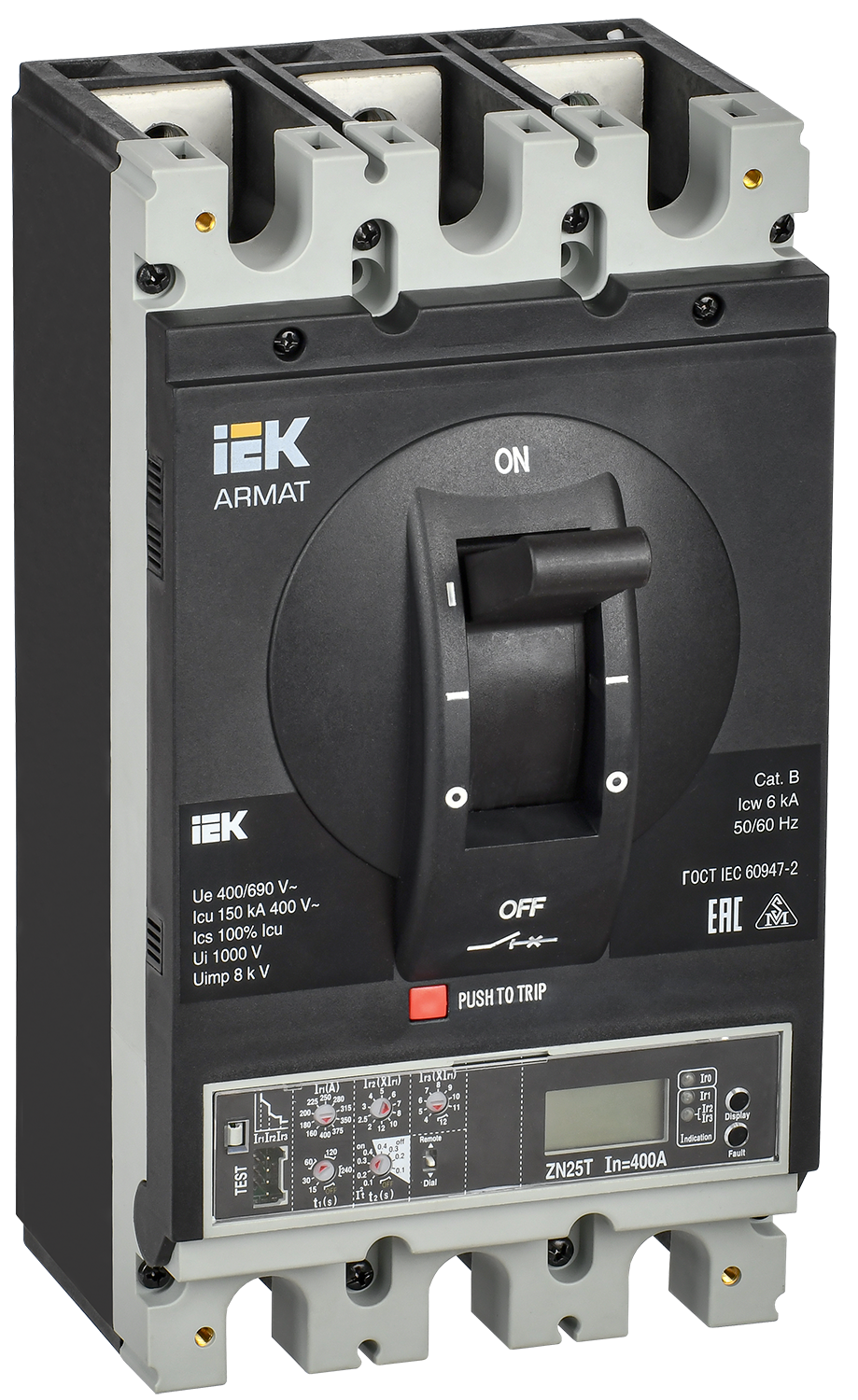 Наименование: ARMAT Автоматический выключатель в литом корпусе 3P типоразмер H 150кА 400А расцепитель электронный продвинутый IEK