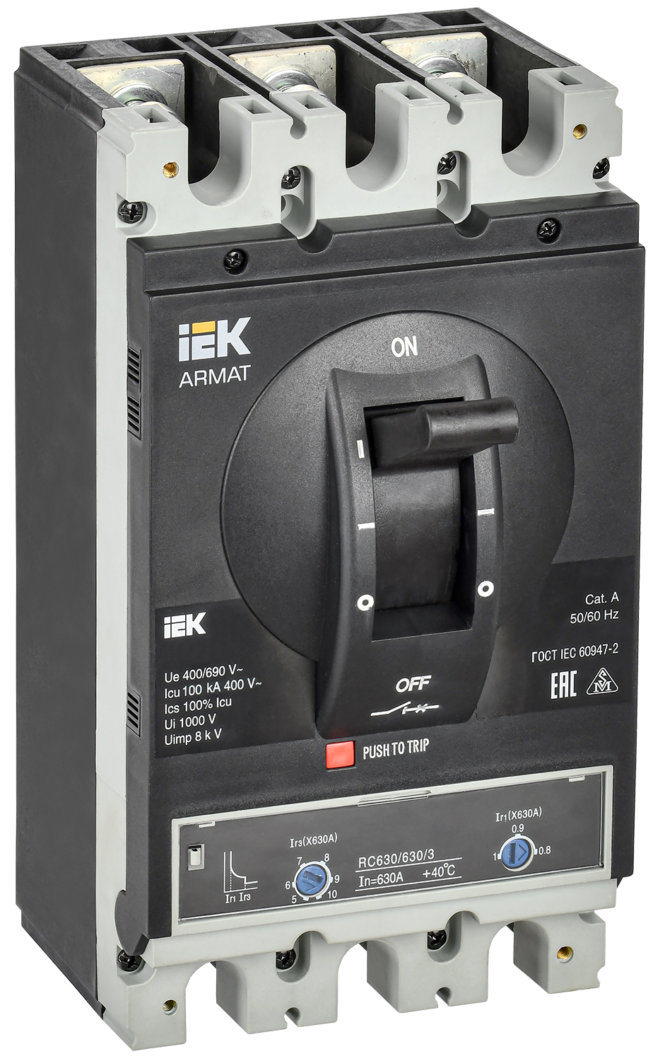 Наименование: ARMAT Автоматический выключатель в литом корпусе 3P типоразмер I 100кА 630А расцепитель термомагнитный регулируемый IEK